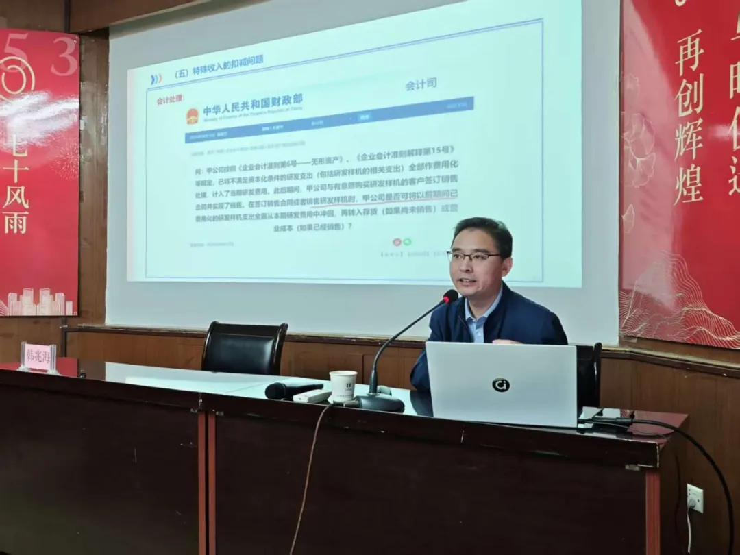 为积极应对严征管时代的税务挑战,9月25日上午,公司举办《严征管时代企业稽查形势与财税合规优化》专题讲座。培训由党委书记、董事、财务总监韩兆海主持,董事长郑彦凯及董事会、监事会成员、各部门负责人与财务专员悉数参加,充分体现管理层对税务合规与风险管理的高度重视。讲座特邀实战派财税专家李运吉,围绕金税四期背景下的稽查新动向、企业常见财税风险及合规应对策略进行深入解析,助力企业提升合规意识与风险防控能力。