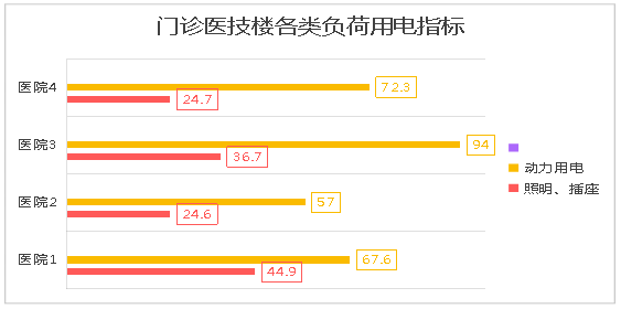 从以上数据可以看出,医疗建筑中照明用电量约占30-35%左右,动力用电占35-45%左右,空调用电占30-40%左右。